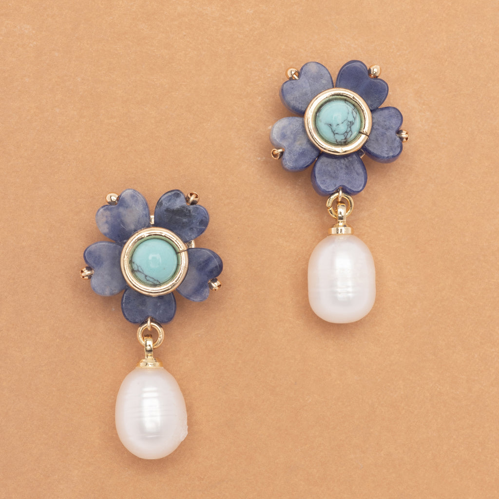 LAPIS LAZULI FLORAL FASHION EARRINGS