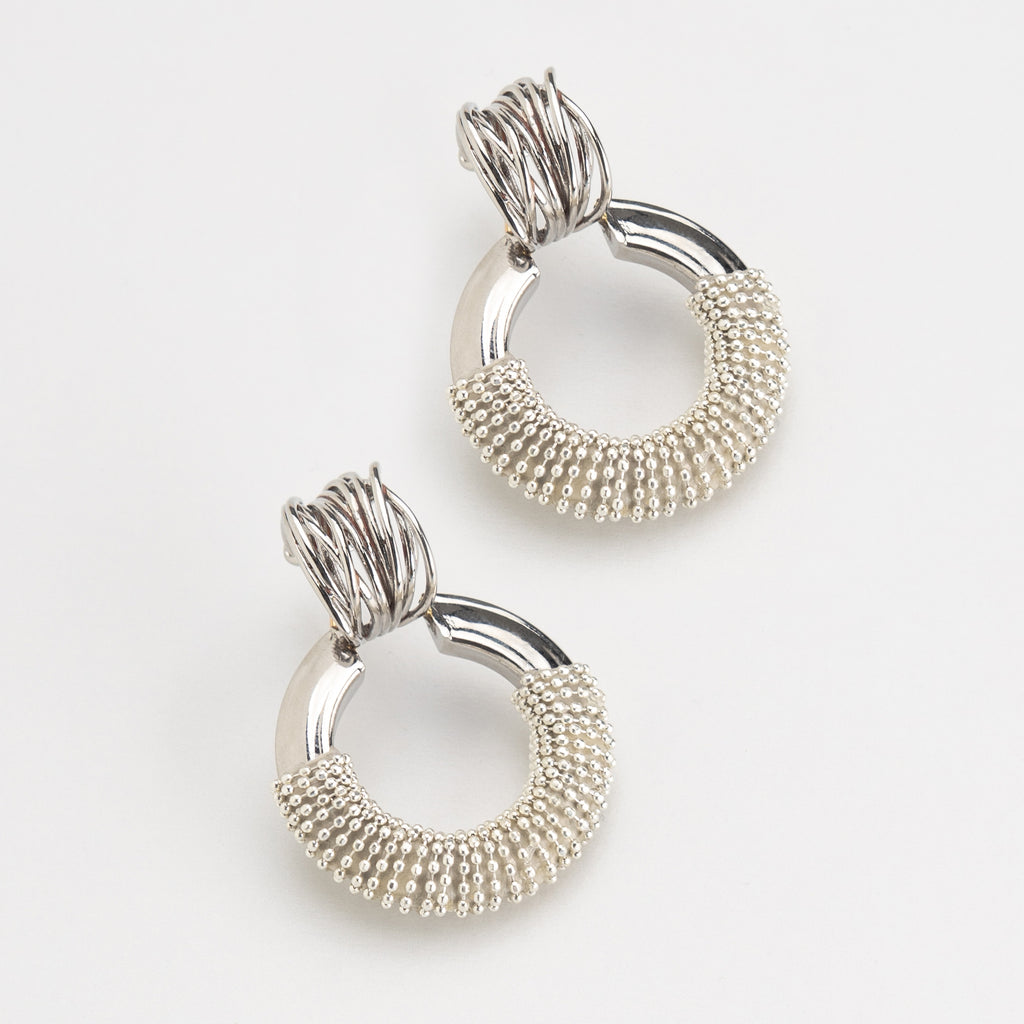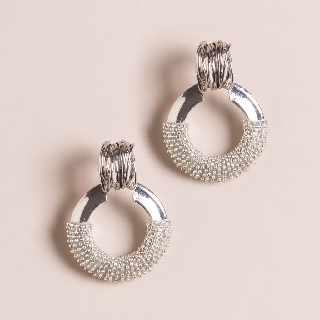 SILVER STUDDED HOOP EARRINGS