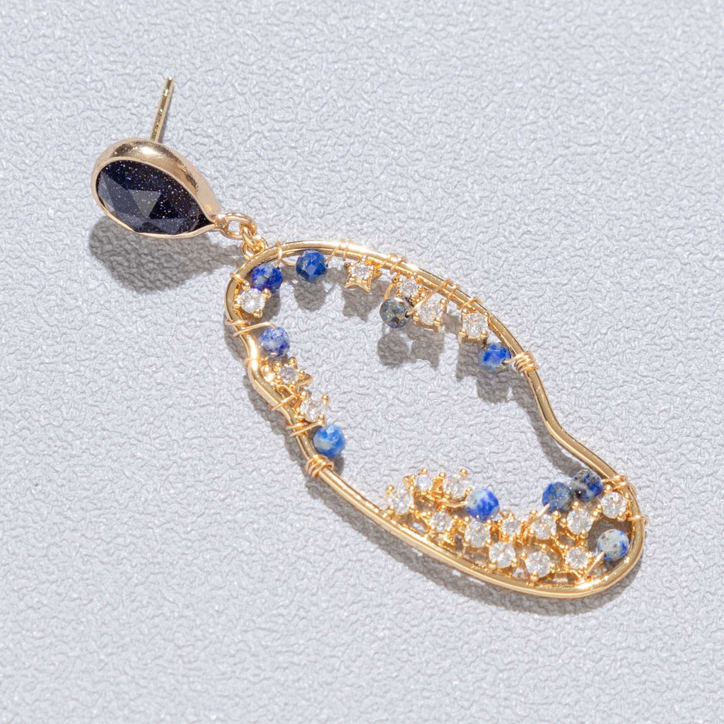 Materials: natural sodalite beads, gold frame, stud back