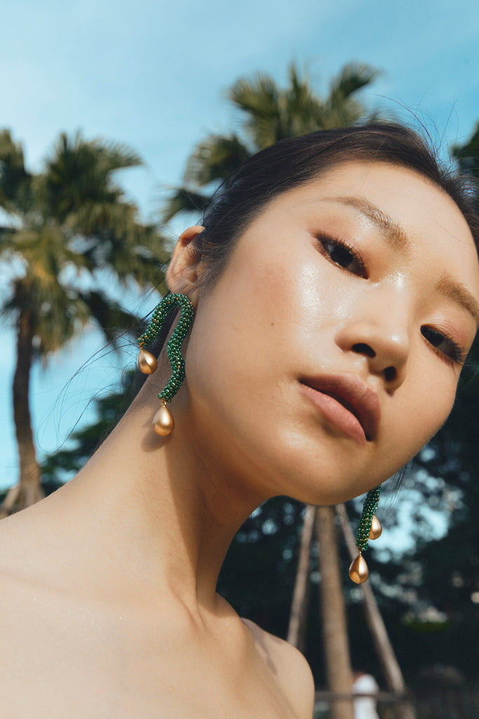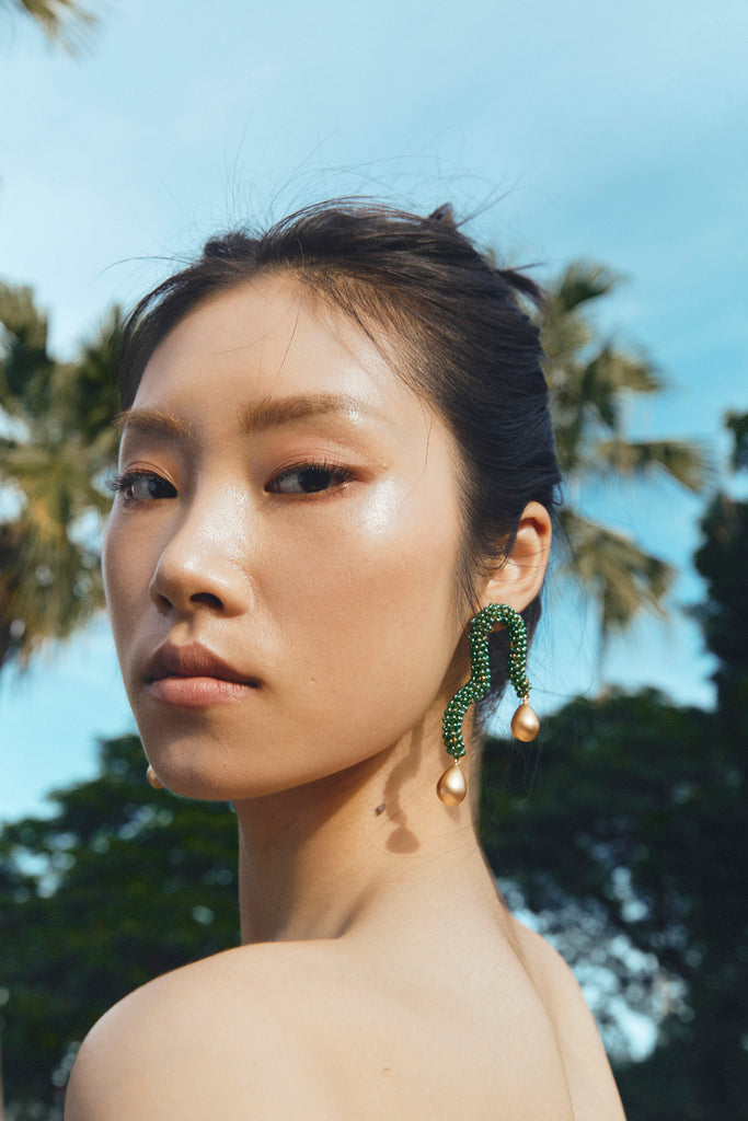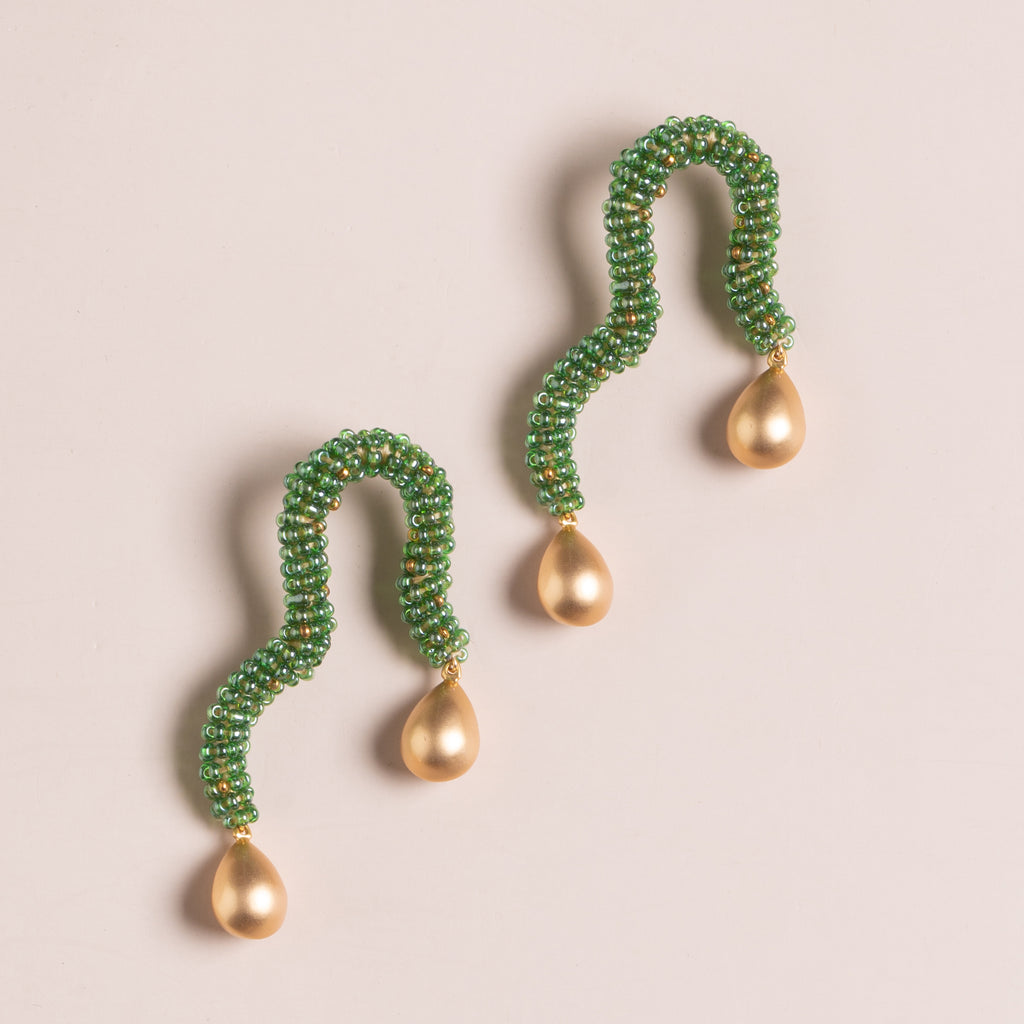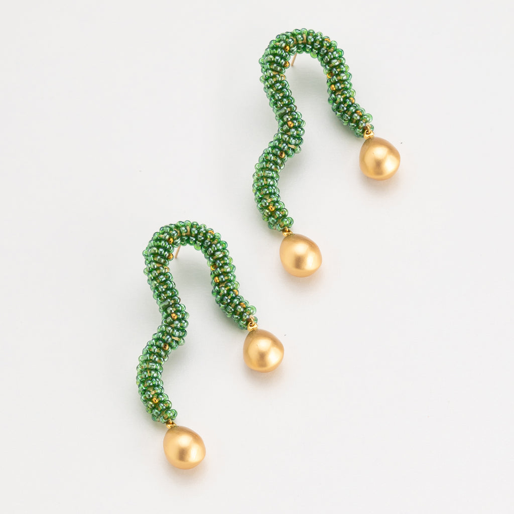 TEAL BEAD GOLD DROP FREEFORM EARRINGS