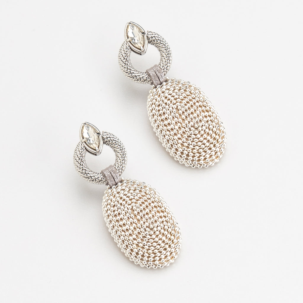 WHITE PEARL BEAD SILVER FASHION EARRINGS