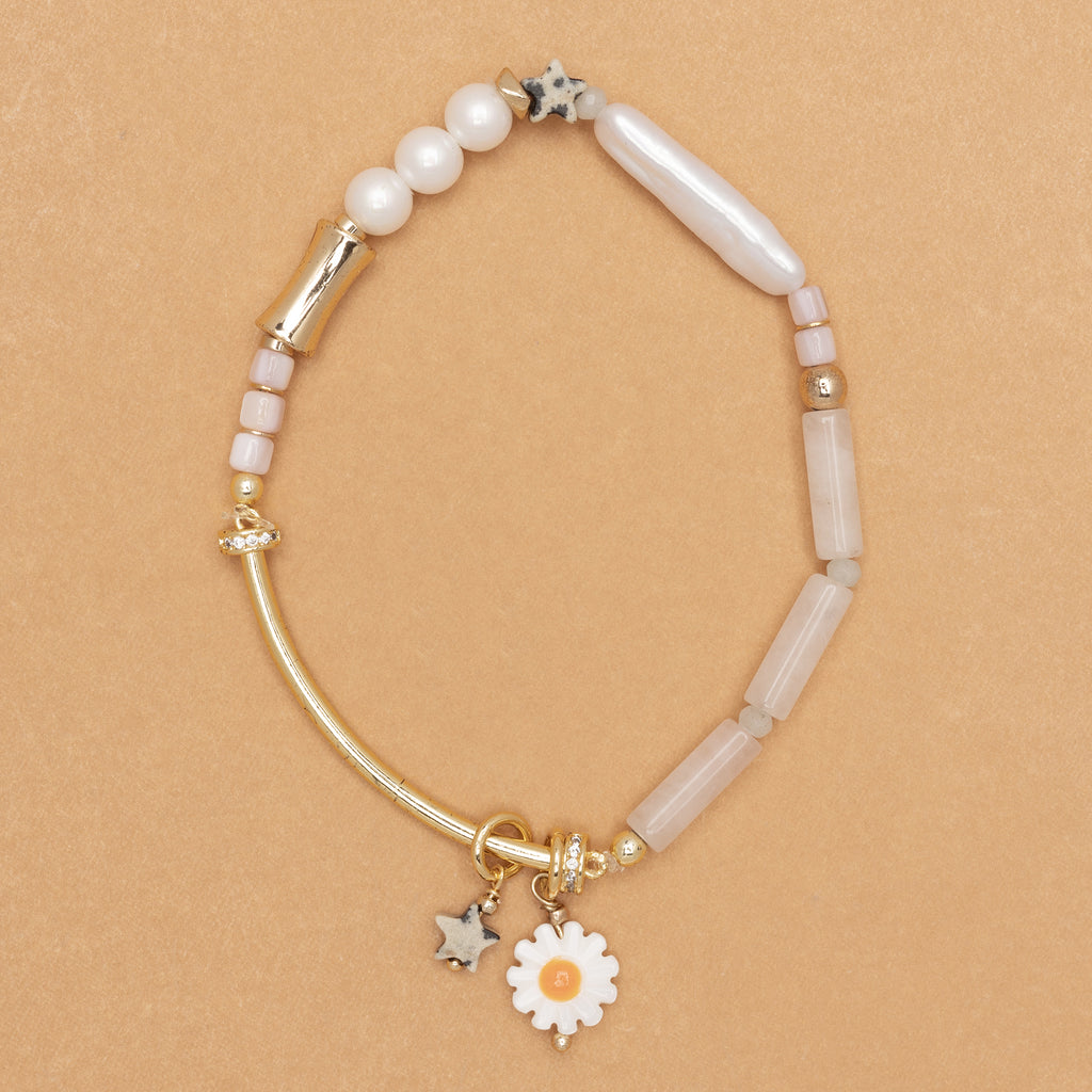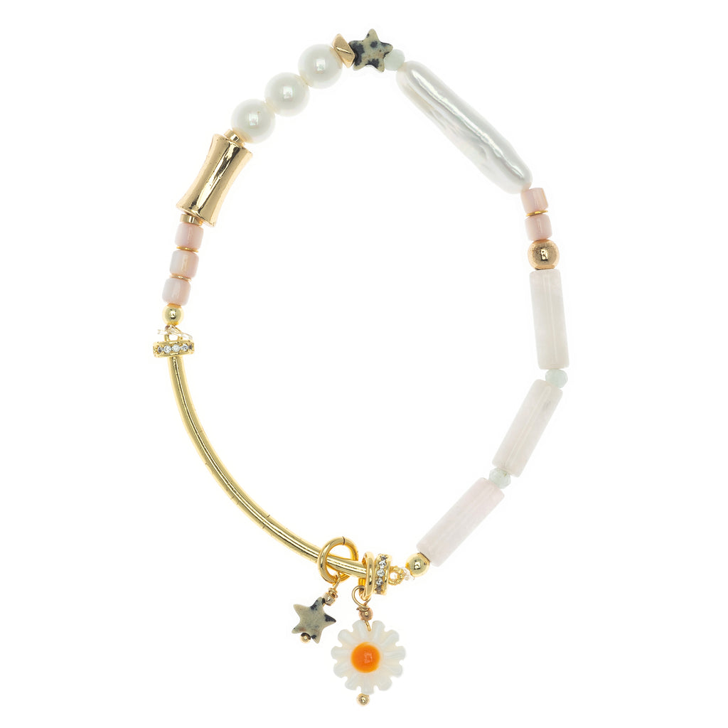 ROSE QUARTZ MIX FLORAL CHARM NECKLACE