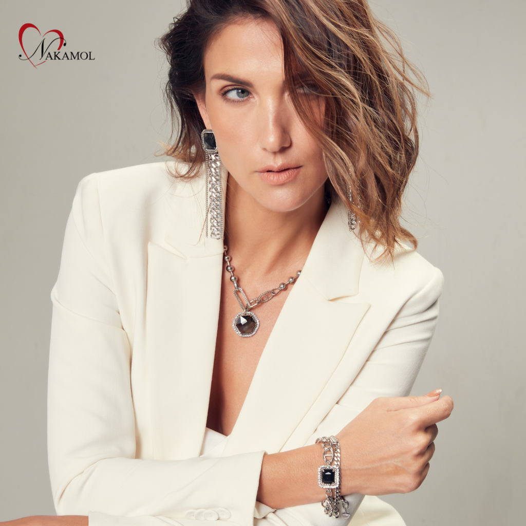 หากต้องการความโดดเด่นในโอกาสพิเศษ เพียงแค่เพิ่มสร้อยคอที่เราออกแบบมาให้สามารถสวมใส่ได้มากกว่าหนึ่งเส้น ก็ยิ่งเสริมความโดดเด่นขึ้นไปอีกระดับ และเมื่อเพิ่มตุ้มหูและสร้อยข้อมือให้ครบเซท จะยิ่งคอมพลีทลุคหรูหรา มีสไตล์แบบสาวเมืองสุดโมเดิร์น ที่เต็มไปด้วยรสนิยมสุดสร้างสรรค์