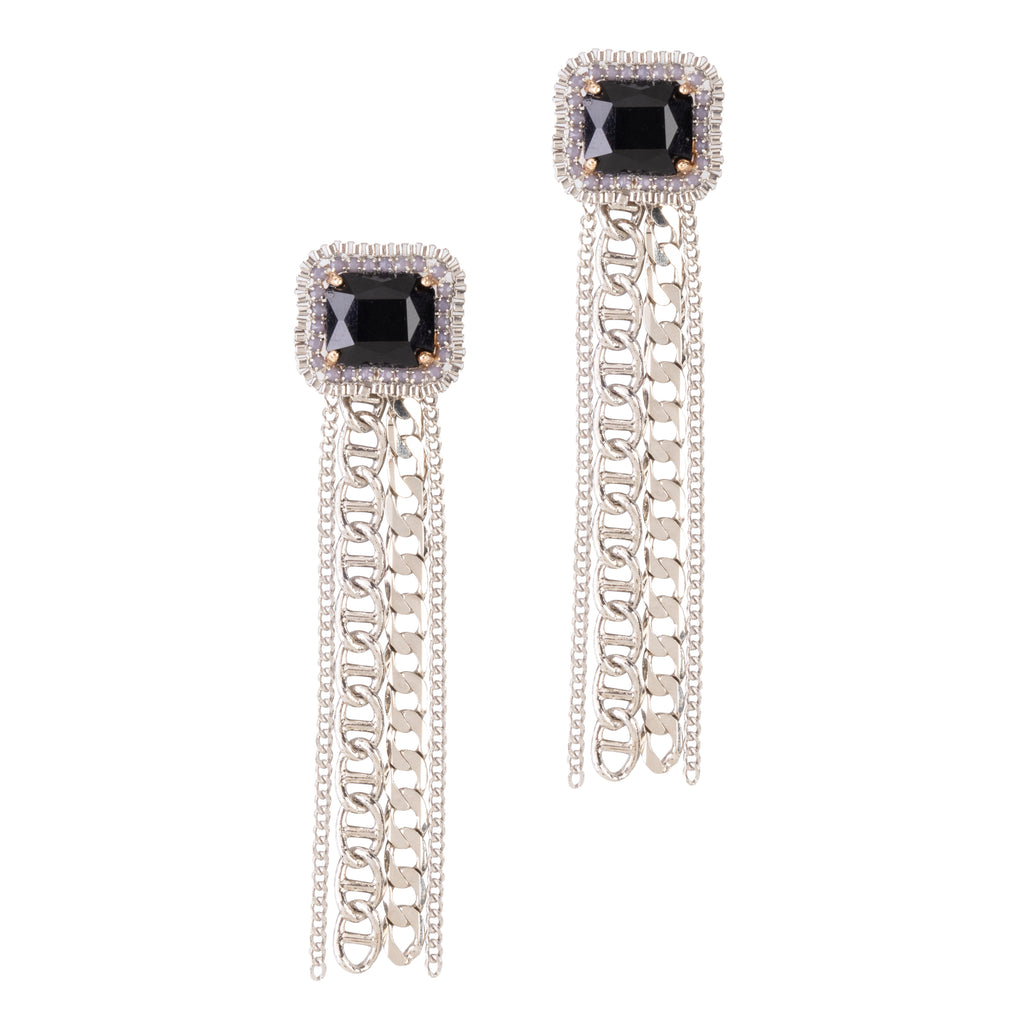 SILVER CHAIN BLACK CRYSTAL WATERFALL EARRING (Cindy Selected)