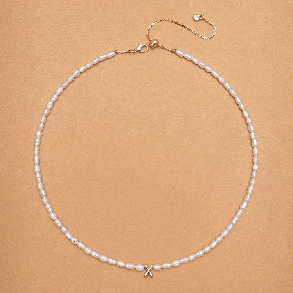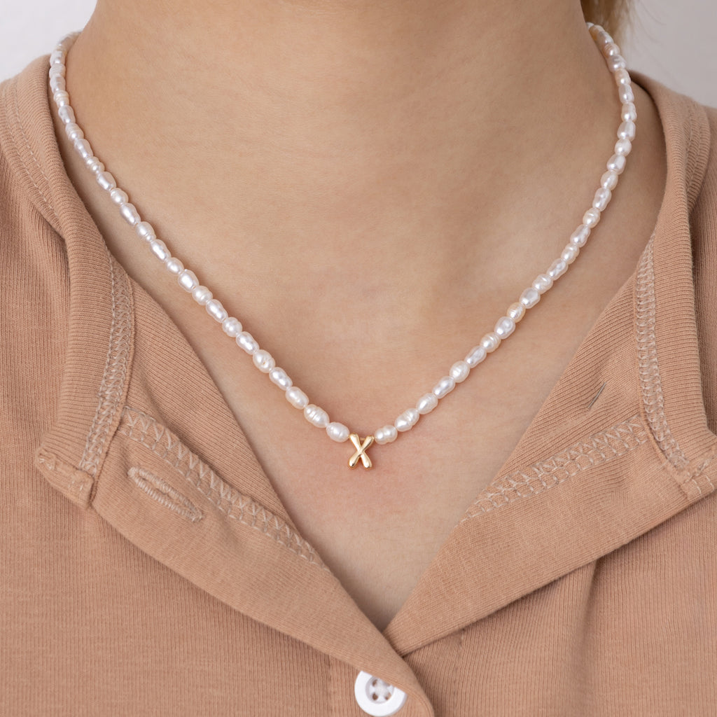 WHITE PEARL X BEAD FASHION NECKLACE